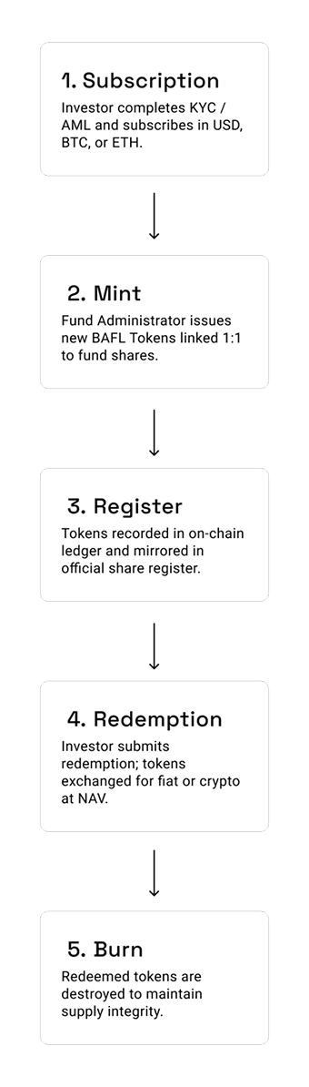 BAFL Tokens represent participating, redeemable preference shares, recorded both on-chain and in the Fund’s official shareholder register.