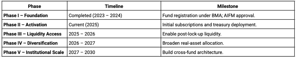These objectives are anchored in compliance, not speculation, each phase advances only when underlying governance and partnerships are confirmed.